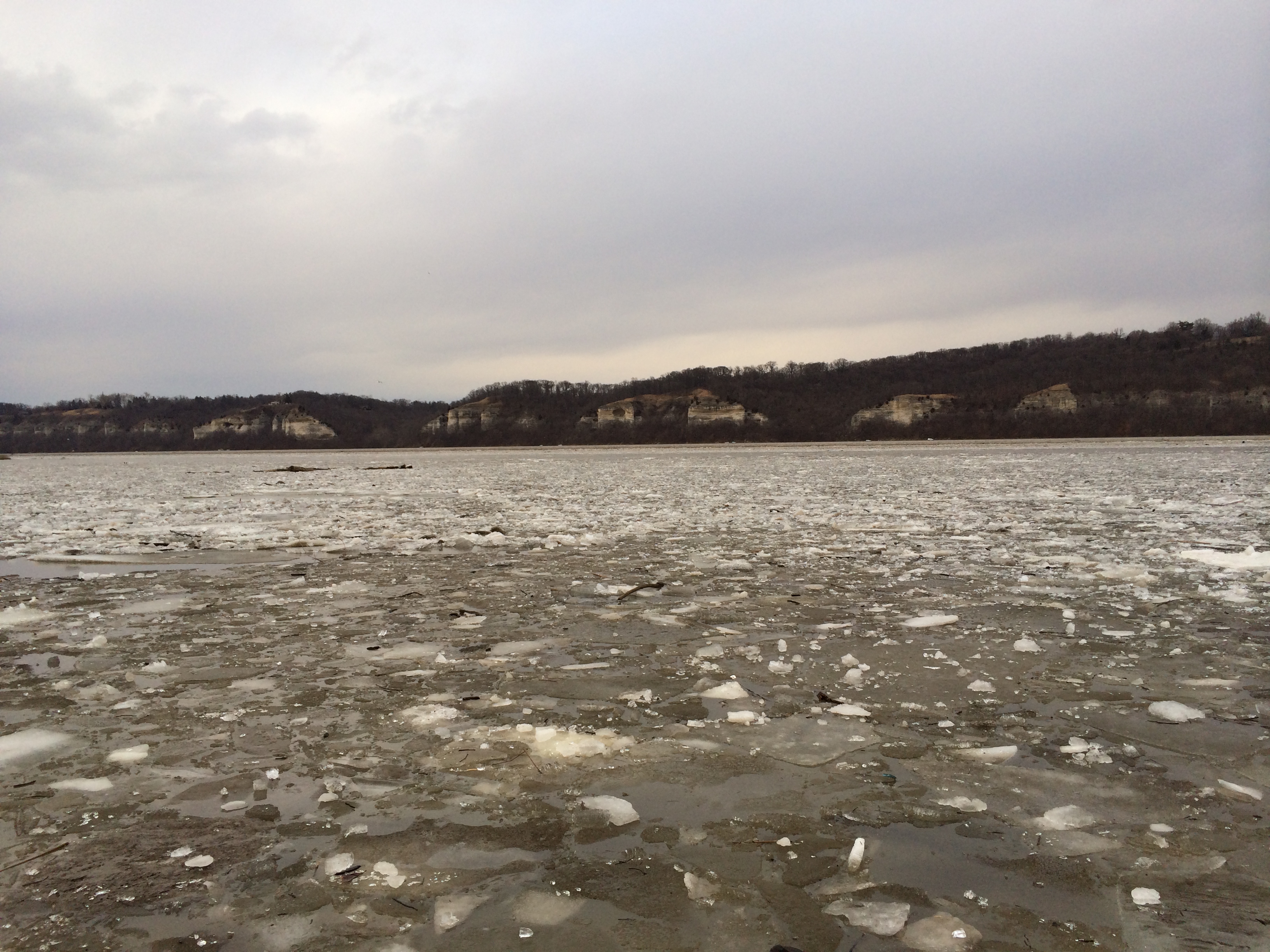 This weekend I heard the river flow. It was full of mini-icebergs jockeying in the turbulent current for position as they raced towards New Orleans. The air was filled with static that was similar to the sound of Ship to Shore or AM radios – agitated, confused, cold and ominous noise. I envisioned the terror of falling in – sinking into the frigid black depths, then bobbing to surface only to have my skull crushed by oncoming ice and being unable to hold on to any of the ice chunks – drowning. It was a scary sound, softer than the winds that blast ahead of a cold front, quieter than shuddering joints of an aircraft as it slams through the jet stream. It was the unsettling sound of nature on the move and the turbulent wind that sent me scuttling off the dock back into Palisades.