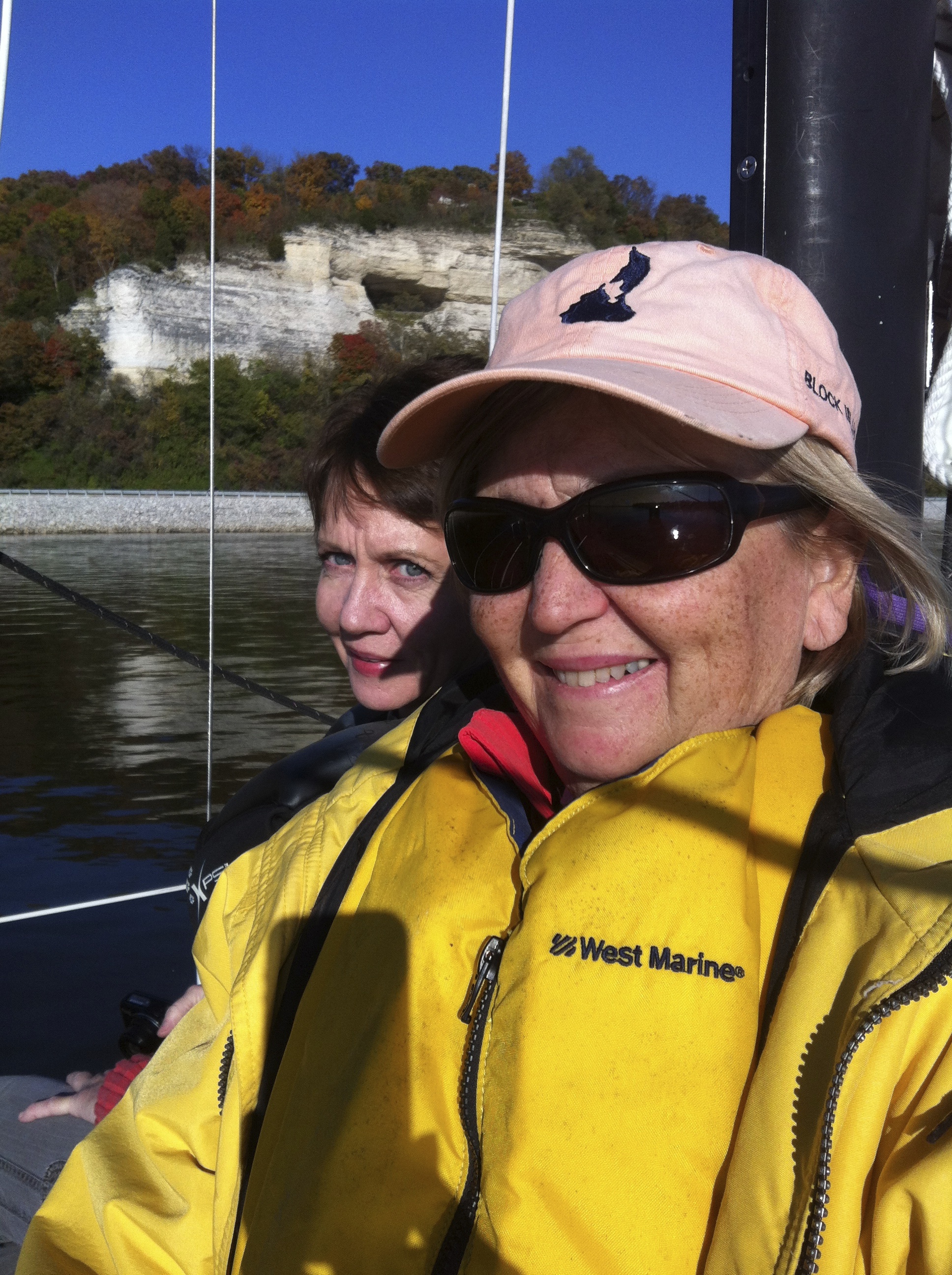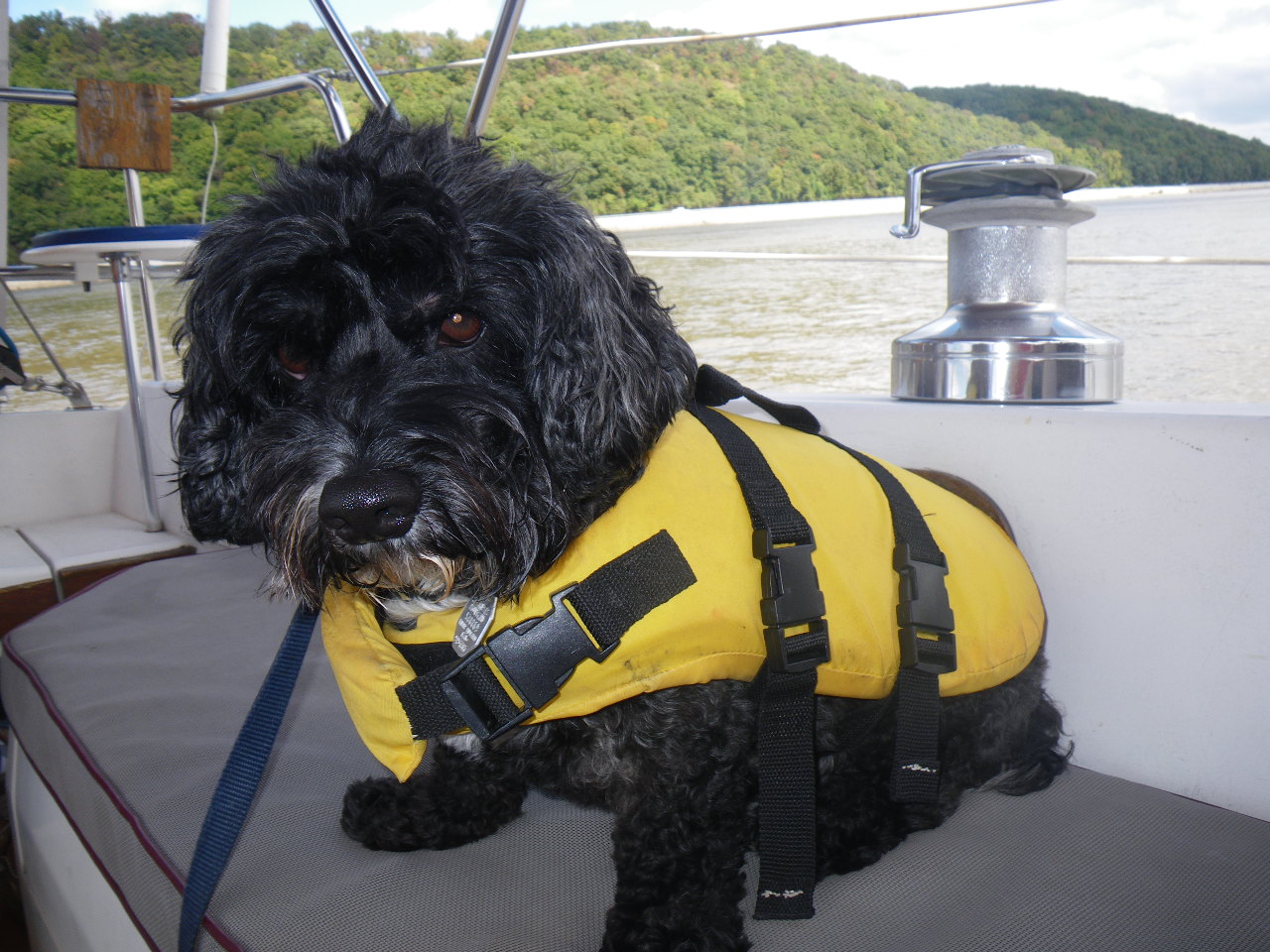 Marina (she was too small to be Yacht Club) aboard Ex Libris. She wears her jacket compliantly because she found falling over board to be pretty scary.