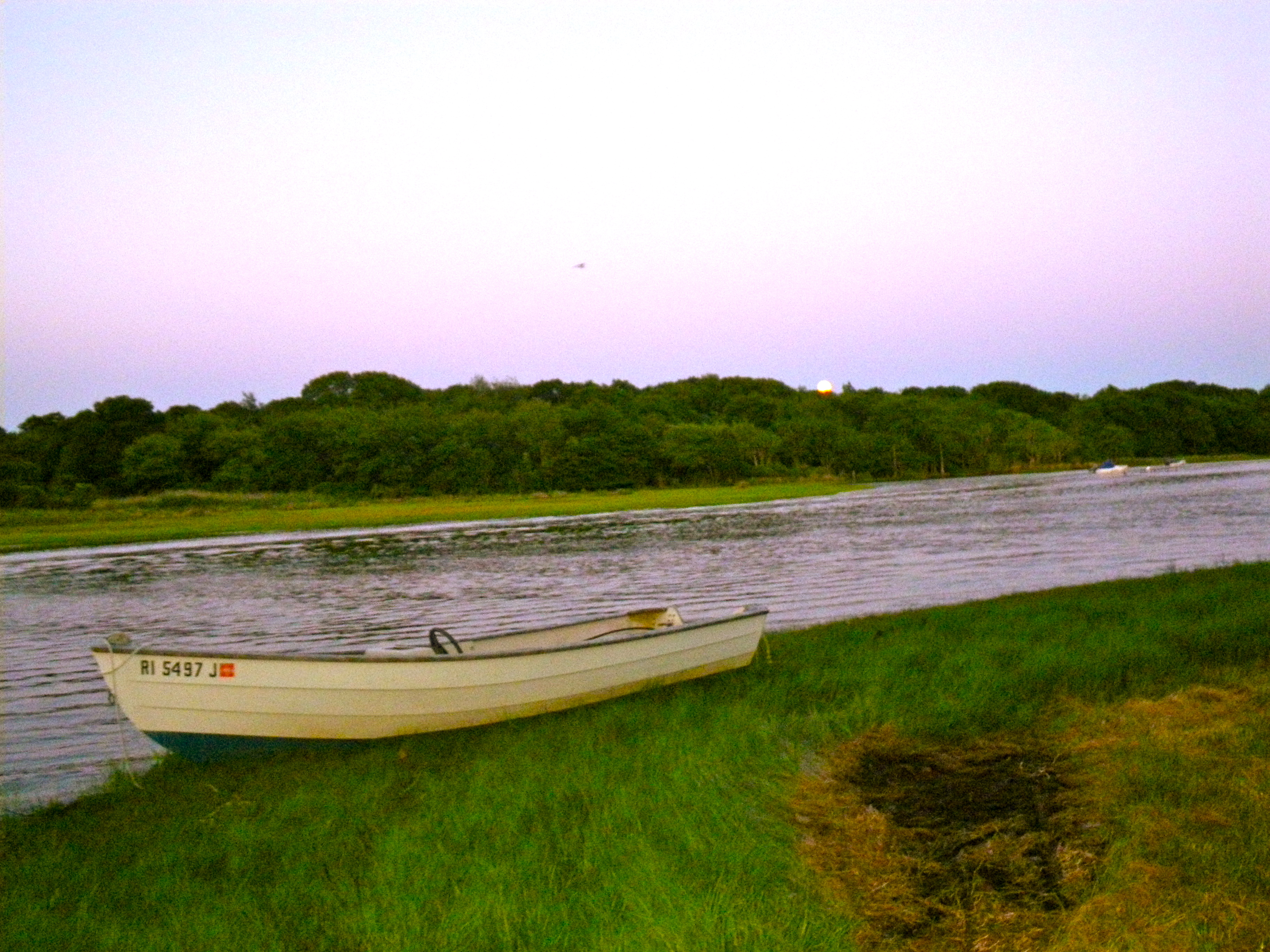 Finn (as in Huck and an homage to Moby Dick’s) our 15′ Montauk Boston Whaler at the mouth of the Narrow RIver where it meets Narragansett Bay, RI